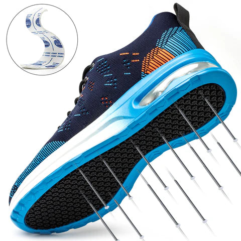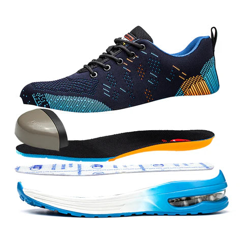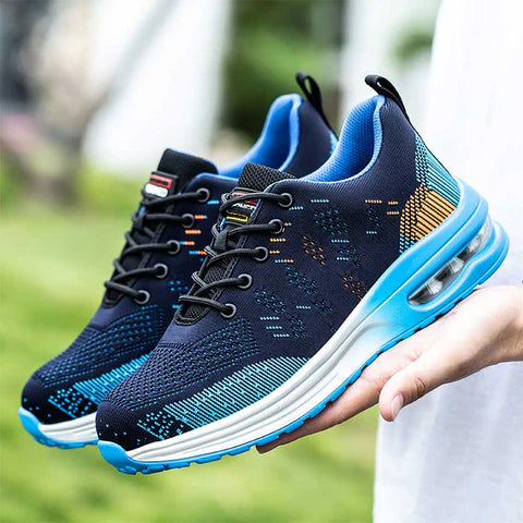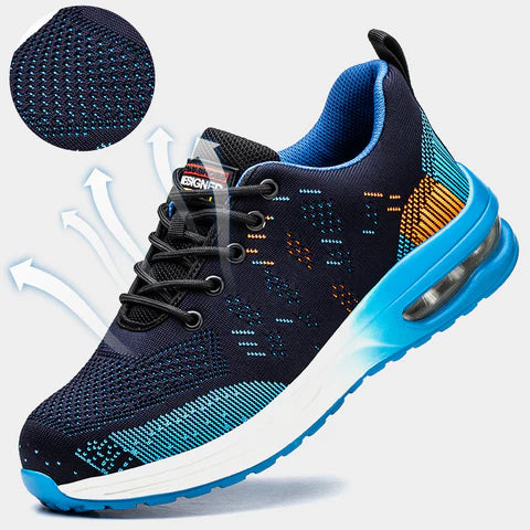The safety work shoes have been given a modern update with a comfier fit. These heavy-duty steel toe work shoes are made of durable mesh. These are the most premium and breathable shoes for the trail that we can provide. Improved durability while the shoes are not too heavy and reduce the burden of work.