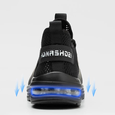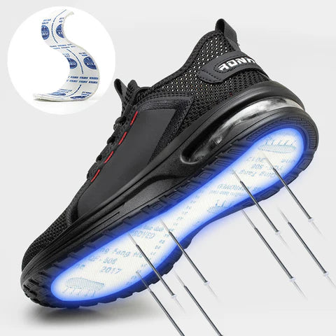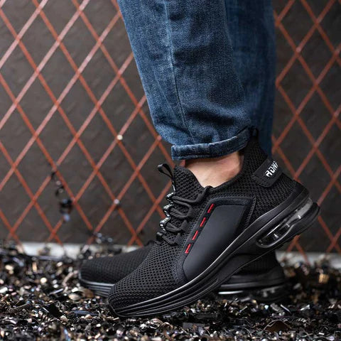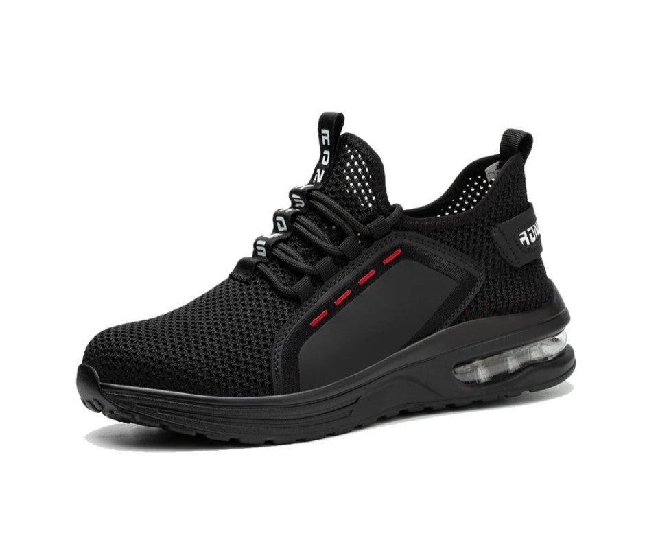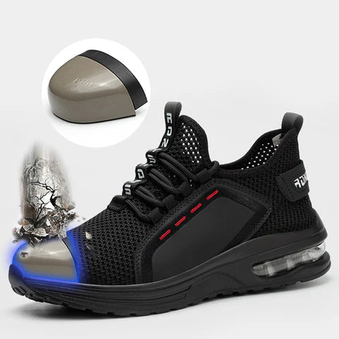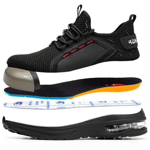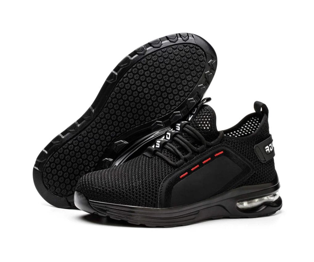 The safety work shoes have been given a modern update with a comfier fit. These heavy-duty steel toe work shoes are made of durable mesh. These are the most premium and breathable shoes for the trail that we can provide. Improved durability while the shoes are not too heavy and reduce the burden of work.